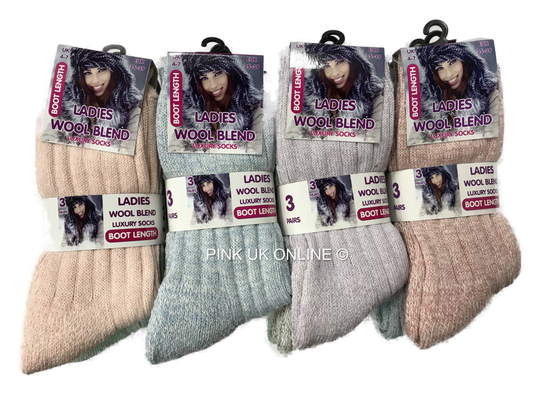 Ladies Thick Wool Blend Thermal Boot Socks Walking Hiking Winter