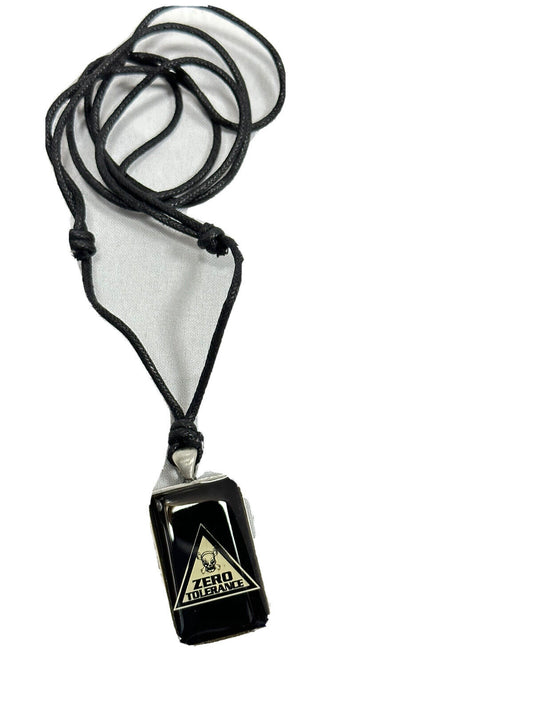 Unisex black adjustable cord Necklace with pendant zero tolerance skull