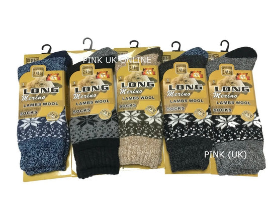 Mens Unisex Snow Flake Merino Lambs Wool Socks 2.4Tog Winter Boot Thick