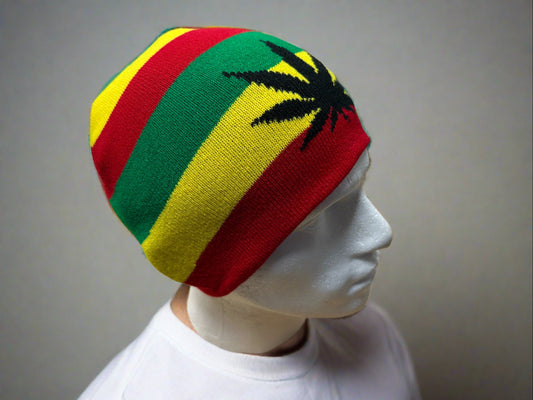 Rasta Leaf Beanie Adults Mens Ladies Woolly Ski Winter Hat